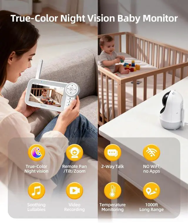 [True-Color Night Vision] Clear Day and Night Monitoring: This monitor with our COLOR Night Vision technology, offers true-color night vision to you to see your babys facial expressions, skin tone, and room details clearly even in low-light conditions. Enjoy the peace of mind at day or night.