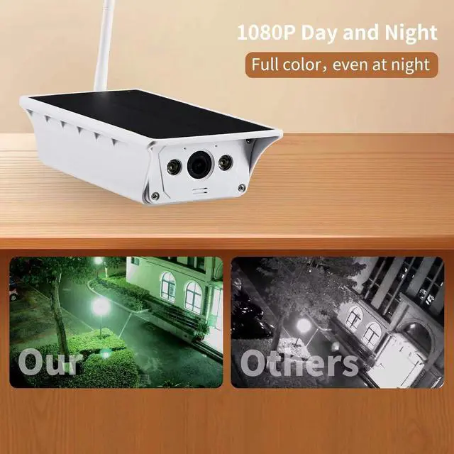 1080P HD + Color Night Vision, 164° Wide Angle This outdoor security camera is equipped with a wide-angle lens to minimize blind spots and a starlight sensor for full-color video day and night. It is designed for wireless home monitoring.