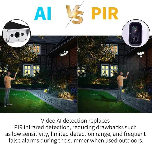 AI Motion Detection Built-In, No SubscriptionWireless Outdoor Camera: Unlike common PIR-based cameras, our built-in AI motion detection offers wider coverage, faster response, and fewer false alarms. No cloud required.