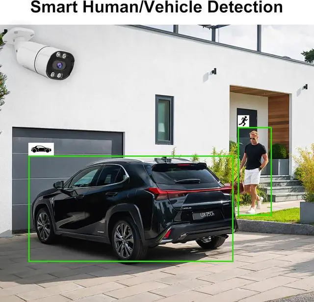 Human/Vehicle Detection & Intelligent Motion Alerts: JideTech 5mp security camera bullet poe featured advanced person/vehicle detection based on cutting-edge detection algorithms to accurately identify people and vehicles, minimizing false alarms triggered by animals, falling leaves, and more. When a person or vehicle enters the monitored area, the camera will automatically detect and send a real-time alert message to your cell phone