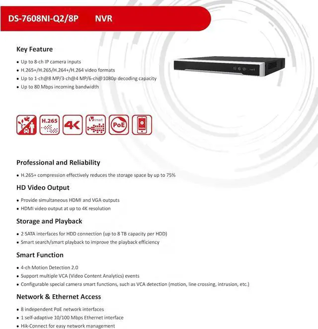 Plug-and-Play 8CH NVR Kit with 2TB HDD: This all-in-one security system comes with an 8-channel POE NVR pre-installed with a 2TB hard drive, plug and play. Just connect the cameras to the NVR via POE cables, power on the device, and you can start recording and monitoring your property right away.
