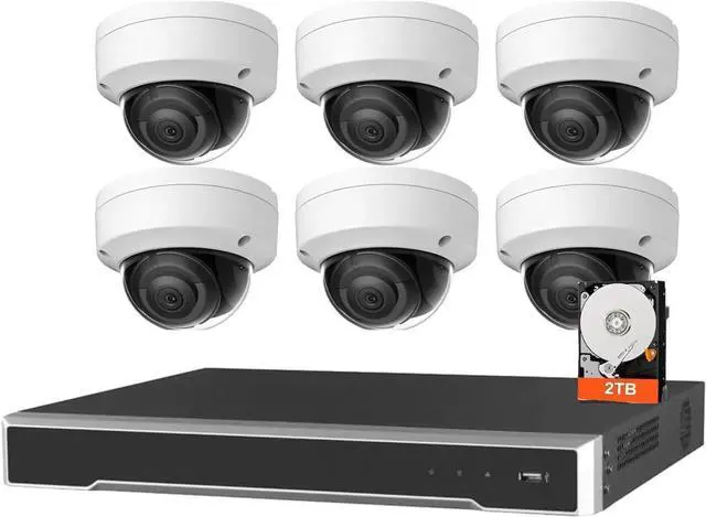 Six 4MP Vandal Dome Cameras with WDR: Equipped with six DS-2CD2143G2-I 4MP IP dome cameras, this system captures crystal-clear, high-definition footage with a 2.8mm fixed lens for wide coverage. Advanced 120dB True WDR technology balances extreme bright and dark areas in a single scene, delivering clear, identifiable images even when facing direct, challenging backlight from sun or headlights.