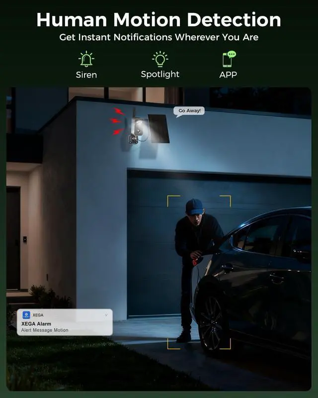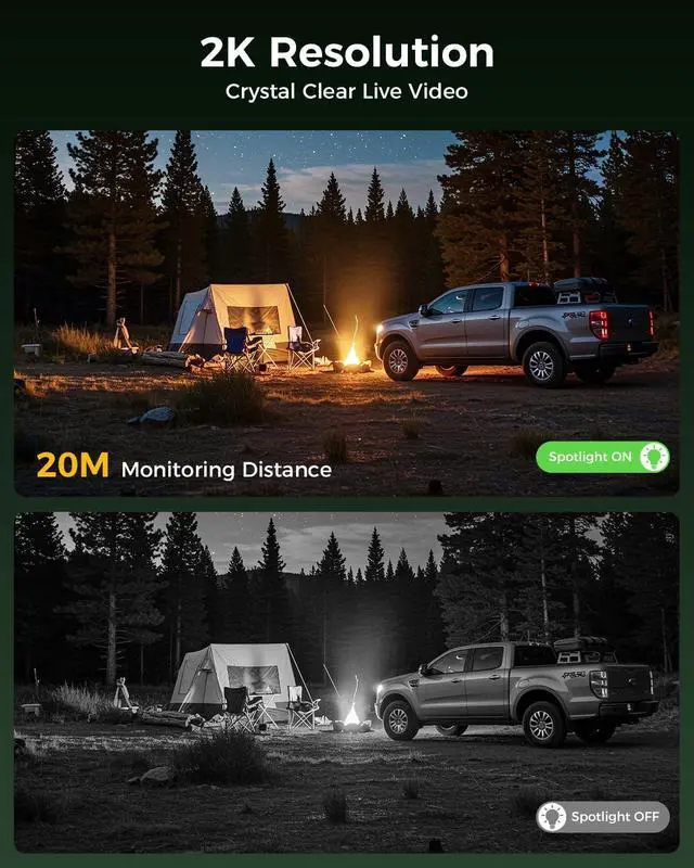 2K HD QualitySmart Detection3MP resolution captures fine details clearly. This 4G Camera Outdoor Wireless with SIM Card supports color/black-and-white night vision switching, with 20m night vision range, ensuring clear day/night monitoring. Features smart motion detectiontriggers sound-light alarm + real-time APP alerts. Receive instant notifications even on business trips or overseas travel.
