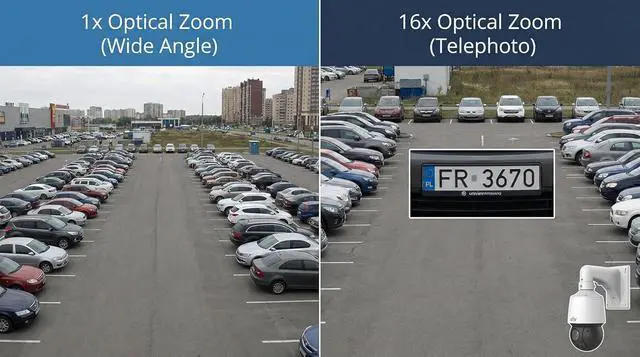 PTZ CAMERA WITH 16X OPTICAL ZOOM: Professional speed dome camera features motorized 16x optical zoom lens for detailed identification of distant objects in full 1080p resolution, ideal for monitoring large outdoor areas
