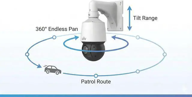 360° ENDLESS PAN AND TILT RANGE: Provides complete horizontal coverage with continuous 360-degree pan rotation and flexible tilt movement, enabling automated patrol routes and real-time manual tracking of subjects across expansive surveillance zones