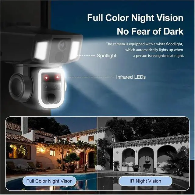 Built-in infrared light + white light, night vision full color or infrared mode optional IR distance 25 meters