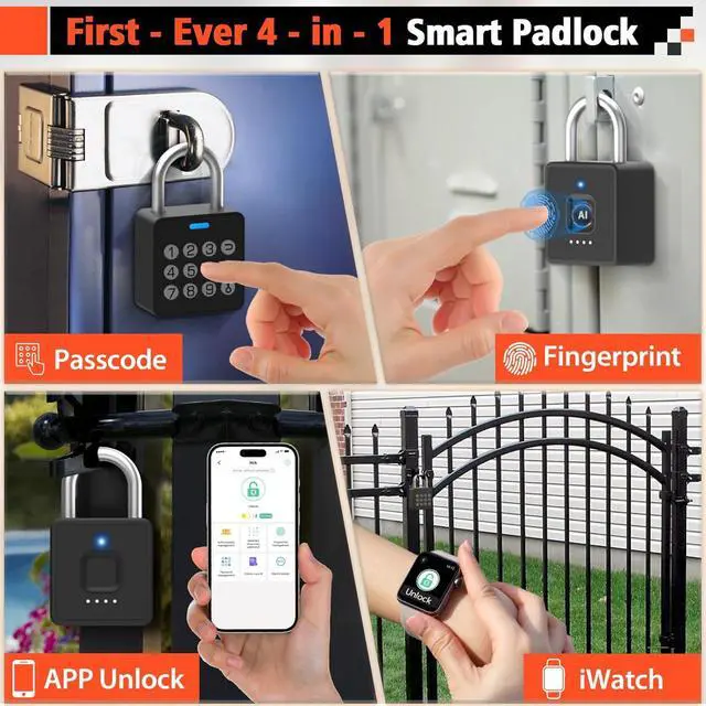 All-In-One Unlock: Fingerprint + Password + APP+ iWatchBreakthrough 4-in-1 unlock! Unlock in 0.2s via fingerprint (faster than combo/key locks). Plus Multi-Function Passwords: 20 permanent codes, time-scheduled guest passwords, and unlimited one-time codes. Your finger, custom codes, or phone total control, no key/password panic.