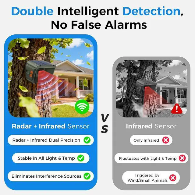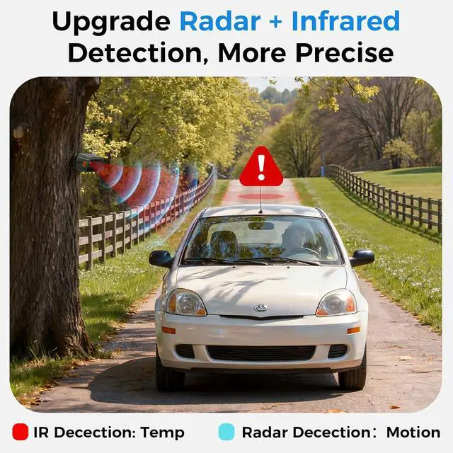 Dual Detection with Zero False AlarmsRadar + IR driveway sensor requires dual-confirmation to alert. With 3 adjustable sensitivity levels and up to 33ft detection width to tailor the detection range for your specific driveway, garden, or yard, ensuring 99% fewer false alarms from small animals or leaves.