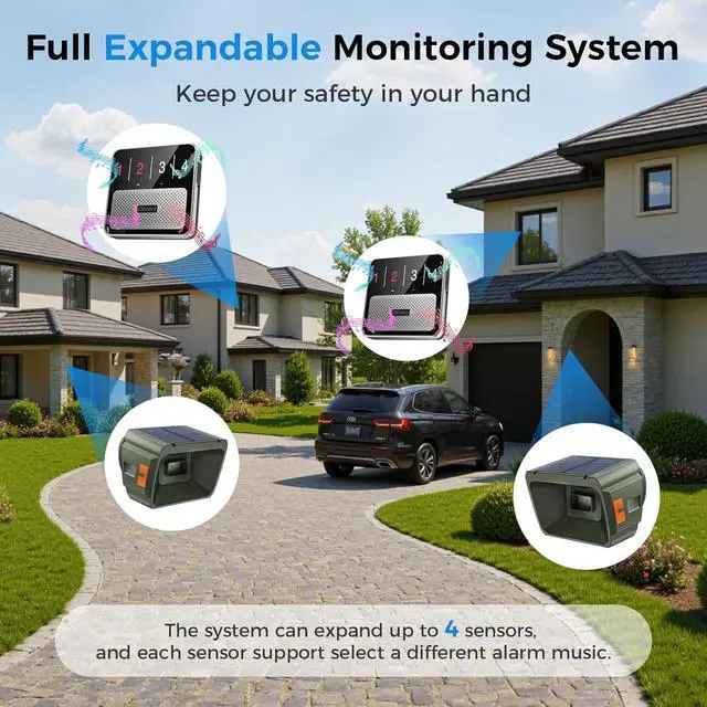 Easy Install & Expandable ProtectionPre-paired sensors ensure fast Install and setup in minutes. Expand with up to 4 extra sensors for tailored security in homes, farms, or realty management. our driveway alarm system comes with a troubleshooting guide for quick solutions and a 30-day return guarantee for worry-free protection.