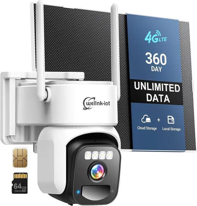 360-Day Mobile SIM Data, Free Cloud & 64GB Card IncludedThis 4g lte cellular security camera comes with a built-in prepaid SIM (360-day unlimited data, renewable via app), 64GB memory card (expandable to 256GB), and lifetime basic cloud storage (3-day playback, 100 uploads/day) to keep your footage safeeven if the camera is stolen.