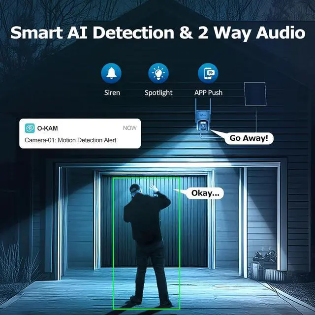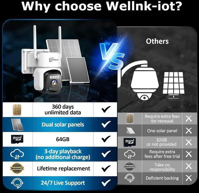 No WiFi & No Electrical Power Needed, Ideal for Off-Grid SecurityIf you require an outdoor security camera but reside or work in an area without Wi-Fi or power lines, this no wifi security camera outdoor is an intelligent solution. This wireless cellular security camera, equipped with human-tracking functionality, operates effectively in any location covered by a 4G signal, including farms, ranches, barns, gardens, roads, parking lots, jobsites, warehouses, vacation homes, and vacant properties.Please note that 4G cameras are not compatible with Wi-Fi connections