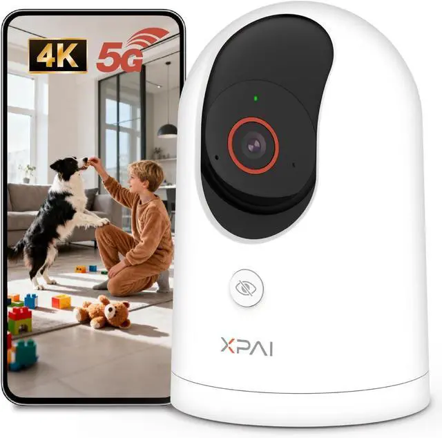 4K Ultra HD & 360° Panoramic View: Xpai indoor security camera delivers crystal-clear 4K resolution with 355° pan and 90° tilt, ensuring every corner of your home is monitored in vivid detail. This wireless camera ensures no blind spots, keeping your family, babies, and pets safe under 24/7 monitoring. Perfect for use as a baby camera or dog camera, its ideal for monitoring your little ones and furry friends.