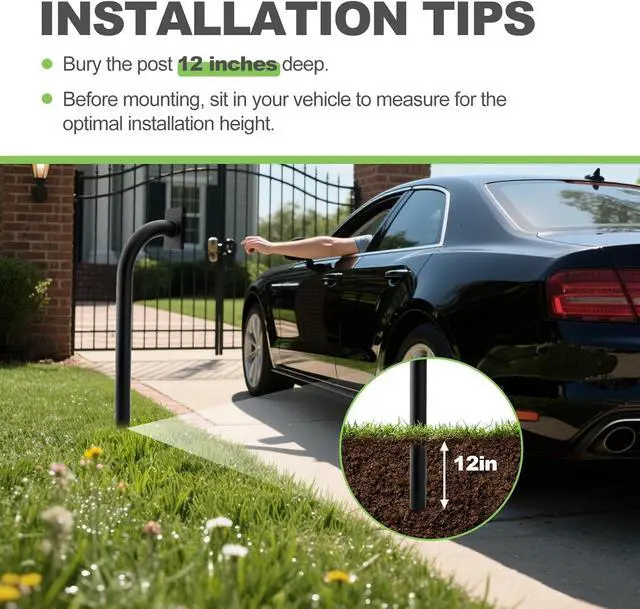 [Boost Convenience] Operate your gate opener from your vehicle no need to get out, especially in bad weather. This offers a much more driver-friendly experience. !Installation tips: Bury the post 12 inches underground. Before installing, sit in your vehicle to measure for the more suitable mounting height.