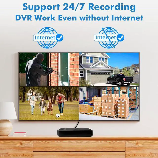 DVR Work Even without Internet The series DVR can be used individually or online applied as a part of a safety surveillance network. - The recording goes on with an HDD inserted in the DVR, even without the Internet. No WiFi Worries: Say goodbye to WiFi dependency! They don't connect to your network or the internet; long-range coverage without compromising your privacy.Internet is only required when needing remote access, playback, etc.