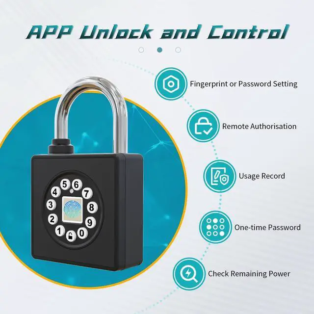 CONVENIENT & EFFICIENTConnect the smart padlock to the free app via Bluetooth. You can use the app to register fingerprints, unlock, set up authorized users, monitor unlock records, etc., so that the control is in your hands anytime, anywhere.