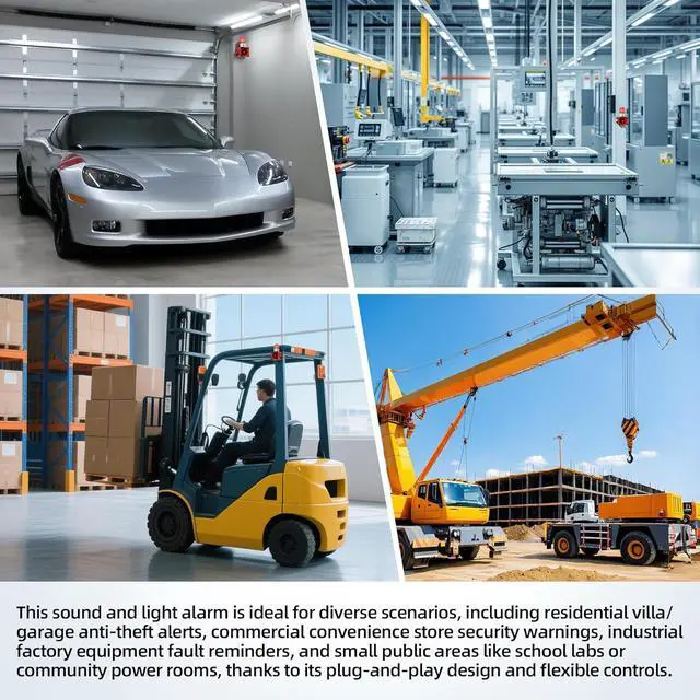 Wide Application - This sound and light alarm suits diverse scenarios, including residential garage anti-theft, commercial store security, industrial equipment fault reminders, and school lab safety alerts. Its multi-functional design meets both daily and professional alert demands.