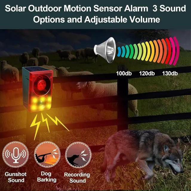 Practical Design: the outdoor solar alarm is powered by solar energy without having to change the battery, with USB charging as a backup during rainy days, the solar alarm can safely and effectively protect your garden; Making it reliable to deter deer, wolves, rabbits and other animals; It supports recording and volume adjustment