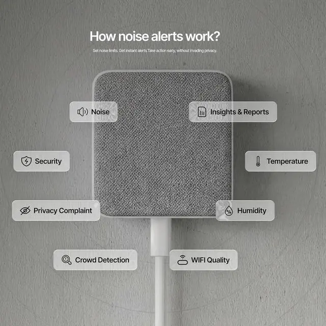 Fast Setup with Live Alerts: Easy installation and app connectivity deliver real-time updates on noise levels, room conditions, and occupancy insights. Get instant notifications directly on your phone, allowing quick response anytime, anywhere. User-friendly setup makes it ideal for hosts, landlords, and property managers of all experience levels.