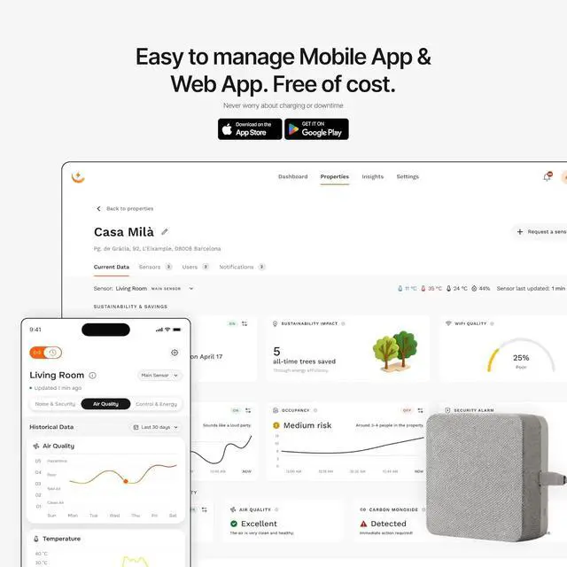 All-in-One Smart Sensor: Combines noise detection, motion activity tracking, and temperature monitoring in a single compact unit. Provides valuable insights into room usage, environmental conditions, and activity patterns. Eliminates the need for multiple devices, saving space while delivering comprehensive monitoring in one smart solution.