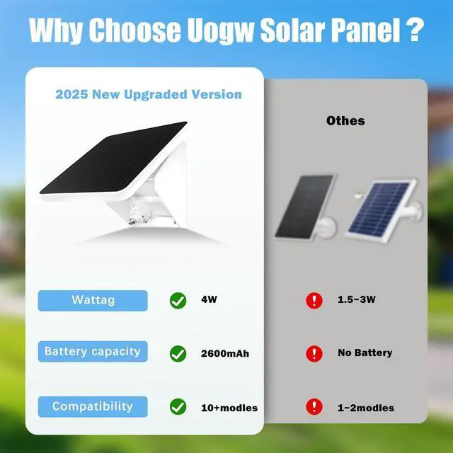 More Powerful :This 4W high-power solar panel delivers efficient and fast charging, ensuring your devices stay powered without interruptionsno more frequent battery replacements for your camera. Includes 4pcs power cable ,Micro Usb Cable ,Magnetic Power Cable, Type C Power Cable
