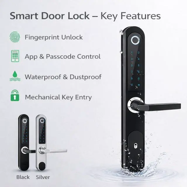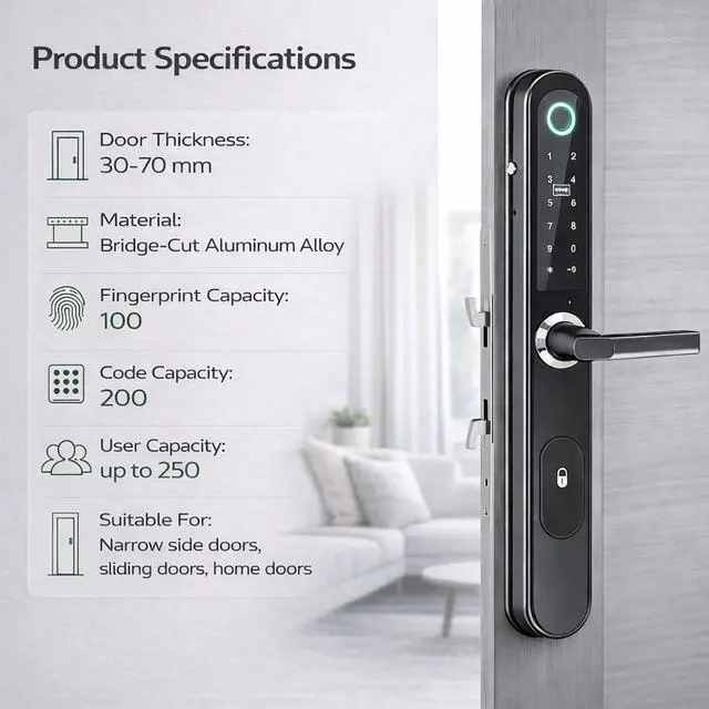 Never Lose Your Keys Again: Choose your favorite way to enter: Fingerprint, Personalized Code, Mobile App, RFID Card, or a Physical Backup Key for emergencies. Complete control over who enters your home.