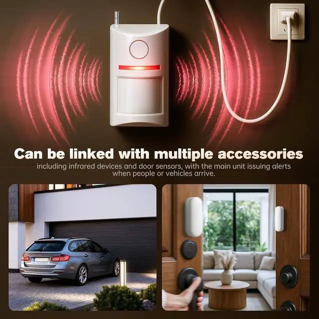 EXPANDABLE SYSTEM & EASY INSTALLATION: Ideal for front doors, retail stores, and garages, this unit features a simple wall-mount setup with adjustable angles for optimal coverage. The system is highly expandable, supporting the learning of up to 128 additional wireless accessories for complete perimeter coverage.