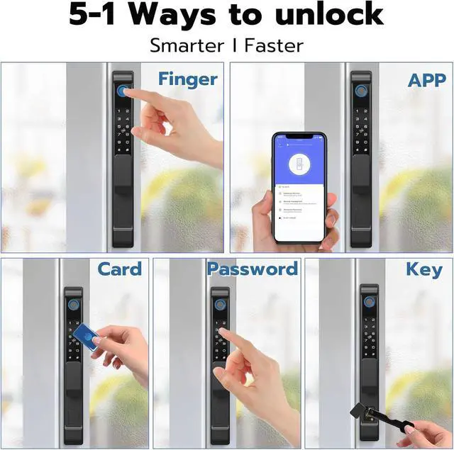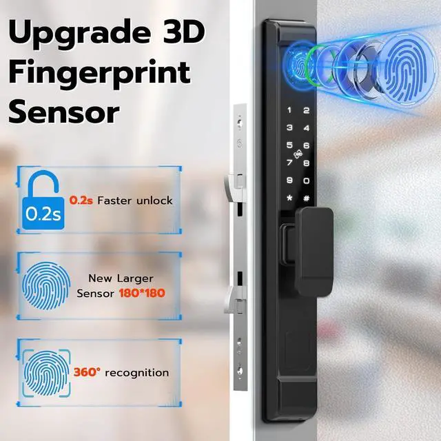 Effortless Access, Your WayUnlock sliding door with one touch. Never worry about losing your keys again or forgetting your passwords! Unlock with the App, RFID, fingerprint, passcodes and backup 2 keys. Sliding door smart lock supports 300 users, including 9 administrators and 291 ordinary users.