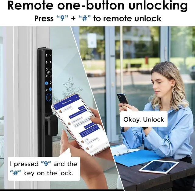 Grant Access Anywhere, AnytimeSliding glass door lock can generate onetime Pin code or remotely unlock. When the visitor enters "9"+"#", you can remotely unlock the door with one click through the APP, without WiFi or gateway. Ideal for Airbnb short-term rental landlords, apartment rental managers and self-housing residents etc.
