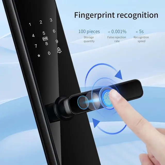 Advanced Technology: Our smart door lock utilizes advanced semiconductor fingerprint recognition technology to provide fast and reliable unlocking, with a recognition speed of just 5 seconds. With a low false recognition rate of less than 0.001%, you can trust that every recognition is accurate and secure.