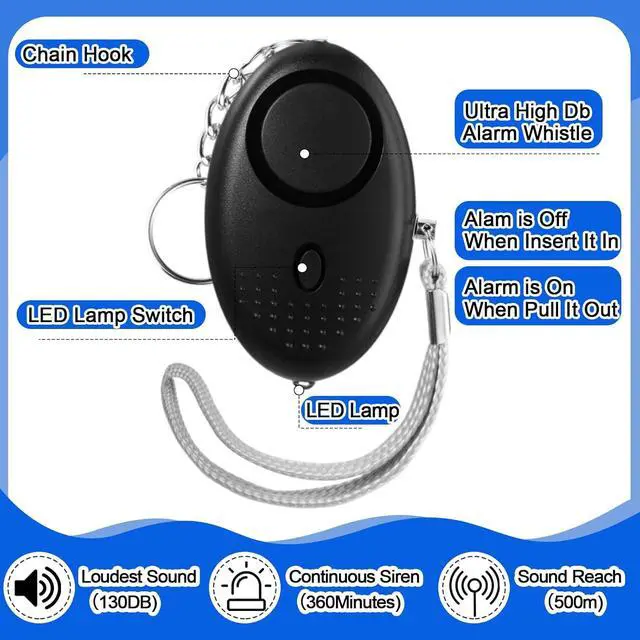 130Db Safety Alarm: 130dB personal alarm can make a loud sound to draw the attention of people around you even at a distance of 300 feet, and can last for 3 to 6 hours of continuous ear piercing alarms to help you escape from dangerous environments, it is very suitable for students, the elderly, children, women, night workers and other people