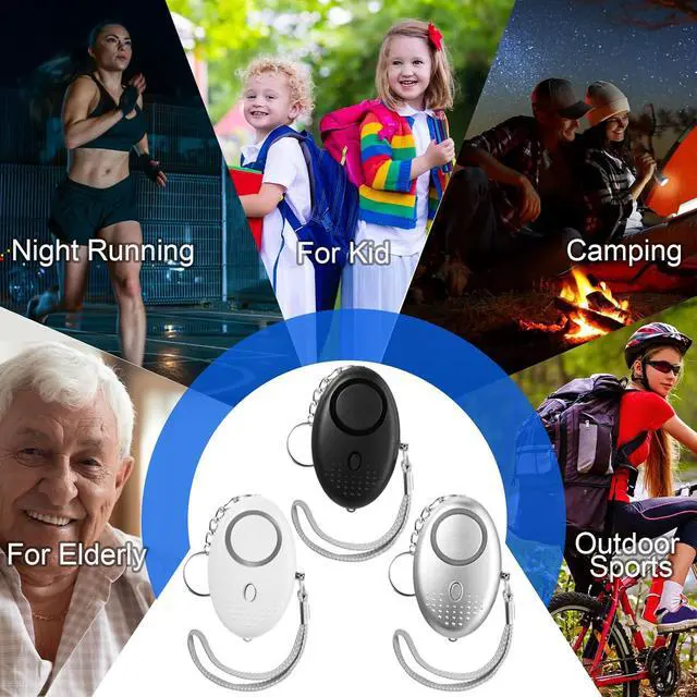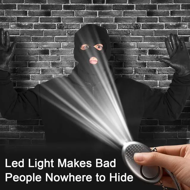 LED Design: the security alarm keychain can be applied for night illumination, works as an emergency light, suitable for night running, dog walking, hiking, camping and other outdoor activities, bright light warns intruders and can help you in the dark