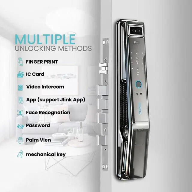 7-in-1 Keyless Entry Freedom Access your home using Face ID, Palm Vein, Fingerprint, Passcode, IC Card, JLINK App, or Emergency Key. No more lockouts, just pure flexibility.