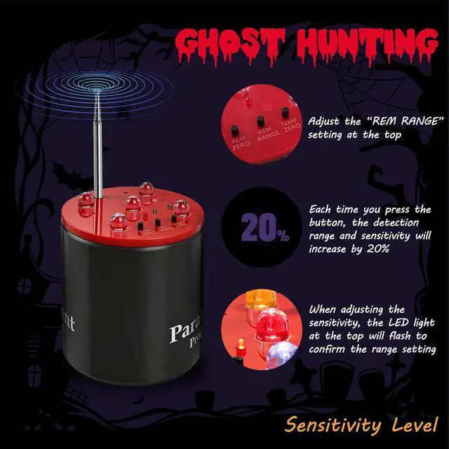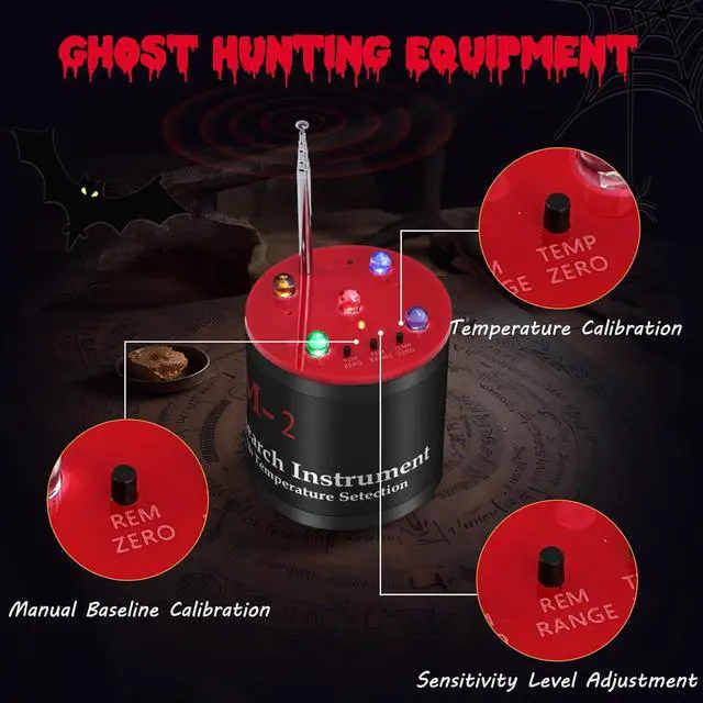 Paranormal VerificationThe ghost equipment detects sudden drops (blue light) or spikes (red light) in temperature, key indicators of paranormal activity. When a ghost approaches, visual and audible alarms intensify flashing LEDs and beeps signal an impending paranormal event.