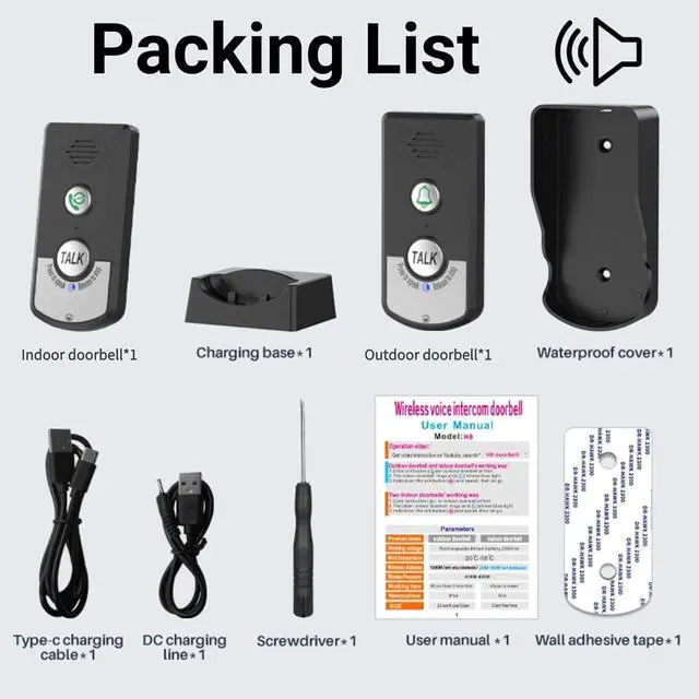 DOORBELL UNITThe package contains 2 exquisite doorbell system units that can be freely switched between ringtone call mode and intercom mode. Bringing great convenience to daily life.