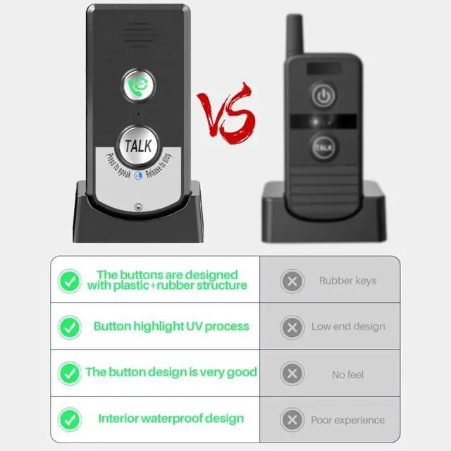 INDICATOR LIGHTThe voice intercom carefully adopts a highly humanized design concept, equipped with bright intercom lights and power lights. The walkie talkie will light up in a specific way, clearly conveying the current working status to the user.