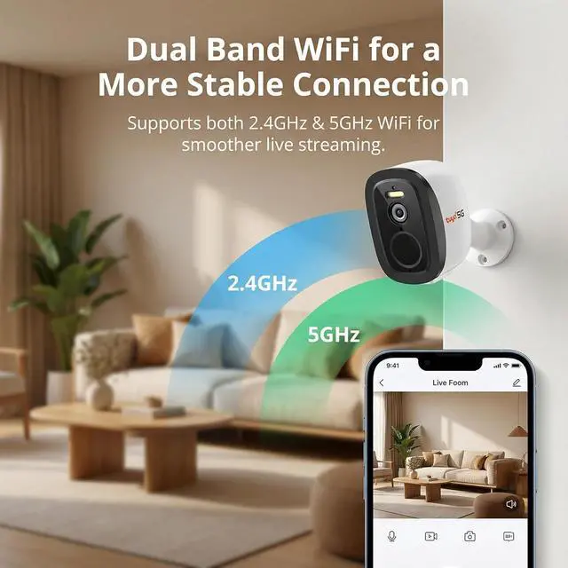 High-Resolution 2K Video: Capture clear, detailed footage with 2K live video resolution, ensuring your security footage is sharp and reliable, even in challenging lighting conditions.