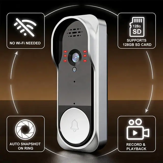 No WiFi Needed, Total Privacy & Simple SetupThis wired video doorbell system operates completely independently, requiring no internet connection. Enjoy complete privacy and securityzero hacking risks and no monthly fees. It's designed for those who prioritize offline security and do not require remote monitoring. Simply plug it in, and it's ready to guard your door.