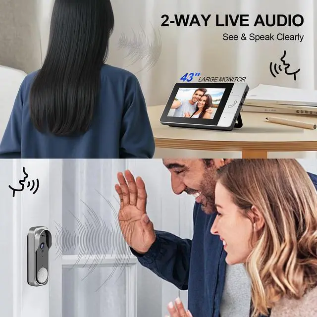 43" Large Indoor Monitor & Crystal Clear 2-Way Talk Features a large 43-inch HD indoor monitor that delivers a bright, clear picture. Communicate easily with visitors through the built-in speaker and microphone without opening the door. Please note: All viewing and communication must be done through this indoor monitor. Perfect for households often occupied or for providing an easy visual intercom solution for the elderly.