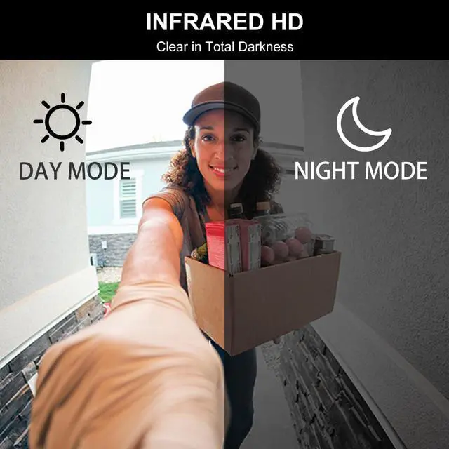 130° Wide Angle & Infrared HD Night VisionThe doorbell camera is equipped with a 130° ultra-wide-angle lens to eliminate blind spots and show a full view of your doorway. Advanced infrared night vision provides clear black-and-white imaging even in total darkness, ensuring 24/7 monitoring of your porch.