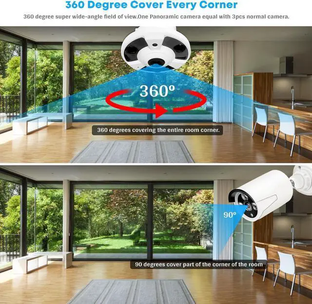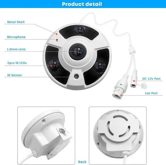 8MP Ultra HD & 360° Panoramic View Equipped with an 8MP high-resolution sensor and 1.8mm wide-angle lens, this fisheye camera delivers crystal-clear images with rich details, capturing every corner of your space without blind spots. The 360° panoramic shooting capability ensures you can monitor the entire area in real-time, whether it's for home security or business surveillance.