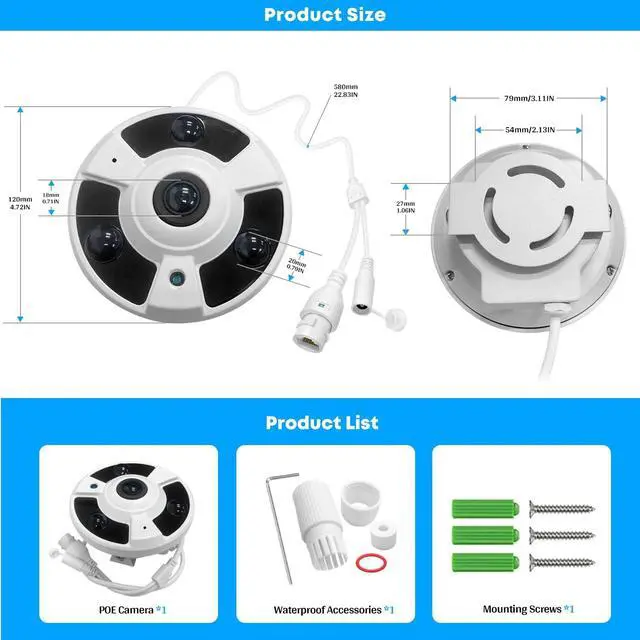 Convenient POE Connection Technology This poe camera adopts Power over Ethernet technology, which integrates power supply and data transmission into a single network cable. No need for separate power cords, simplifying the installation process greatly. It is compatible with most POE switches and NVRs, making it easy to set up a stable and reliable surveillance system.