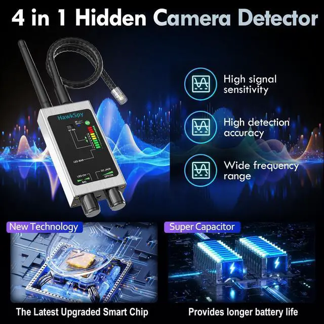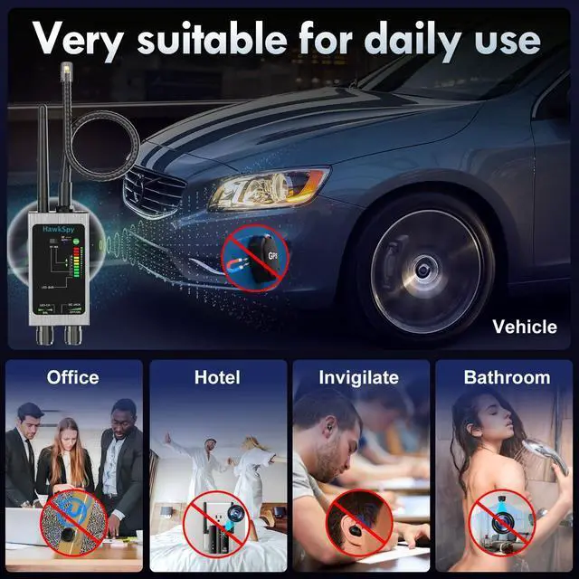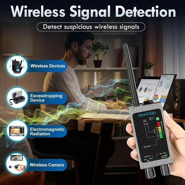 Bug Detector & Listening Device Finder Secure Business Meetings Detects wireless listening devices, and hidden WiFi cameras. Perfect for executives, lawyers, and private investigators to prevent unauthorized eavesdropping and data leaks. Adjustable sensitivity allows precise detection in offices, meeting rooms, and homes.