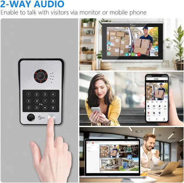 TWO WAY AUDIO:When someone rings the doorbell, all monitors and phone will ring. you can see, hear and talk to anyone in front of your door from anywhere and you won't miss any visitorsYou can answer and unlock the door with any monitor.You can connect all 12V electronic locks. All monitors support call forwarding or internal speaking (audio only) between indoor monitors.