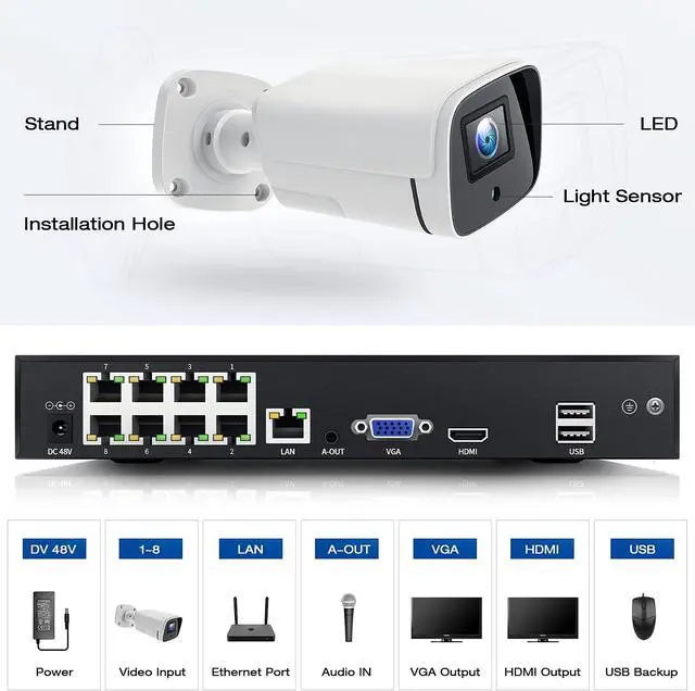 Local Storage & H.265 Video Compression 8 Channel H.265+ 4K NVR Security Camera System Include a pre-installed 500GB, no need to Purchase or Install Hard Drive. It Supports 24 hours More than 10 Days Reliable Video Recording. Compared with H.264, Second Generation H.265+ is Able to Double Data Compression Ratio, While Improve Video Quality with Low Bit-rate, It Enables IP Camera to Deliver Smooth HD Video with Low Bandwidth, in Turn, Reducing the Network Bandwidth and Save up to 50% Video Storage Space.