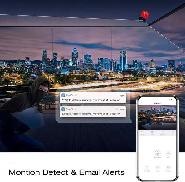 Two-way audio & 24/7 Continuous Recording Enhance your security with integrated audio and visual alarms. Instant alerts via loud sirens and flashing lights effectively deter intruders and draw immediate attention to potential threats. Never miss a moment with 24/7 continuous recording.