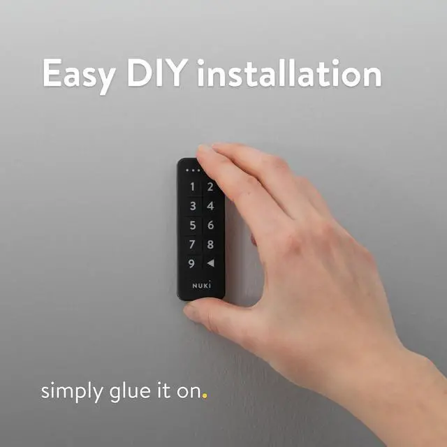 Easy installation: Mount the Nuki Keypad in minutes. Simply stick it to the wall outside, next to your front door. Dust- and water-resistent, it withstands -4°F to +158°F for year-round durability.