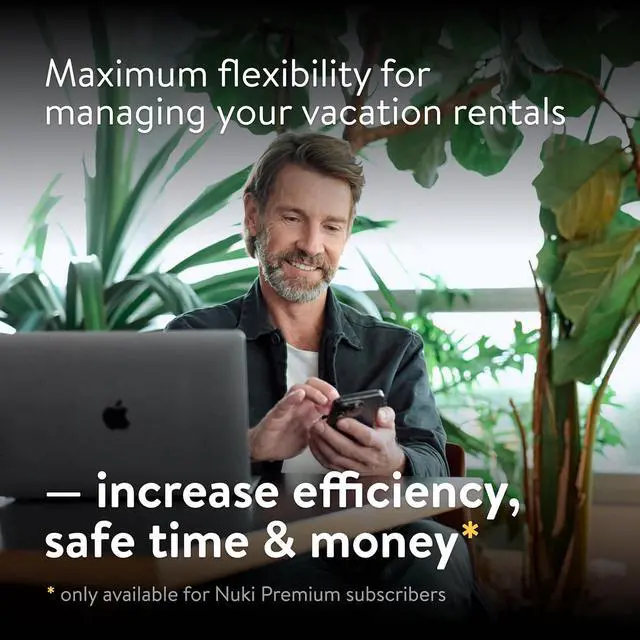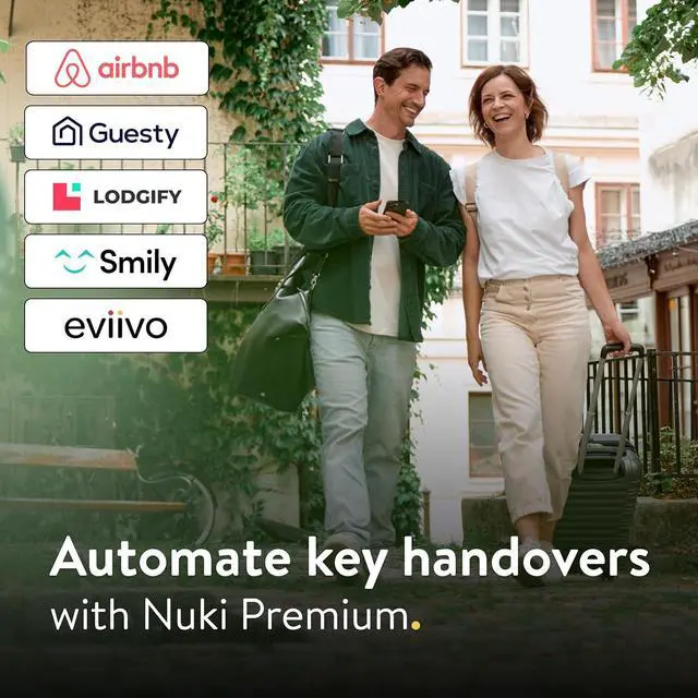 Automate key handovers: Activate Nuki Premium to automate your hosting business. Access permissions and entry codes will be managed automatically for you so you can save time and money.