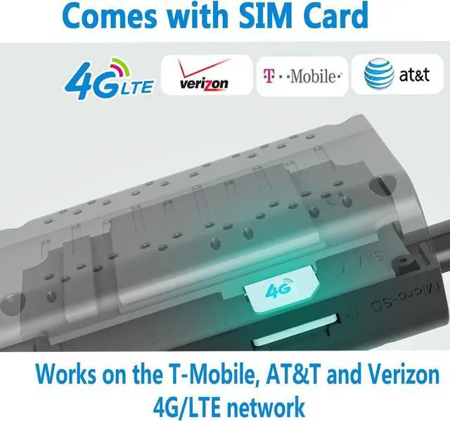SIM Card and Data Trial - The package includes an EIOTCLUB prepaid 4G LTE SIM card with a 300MB trial data. It supports 4G LTE networks from Verizon, T-Mobile, and AT&T. Data plans can be renewed through the app after the trial period