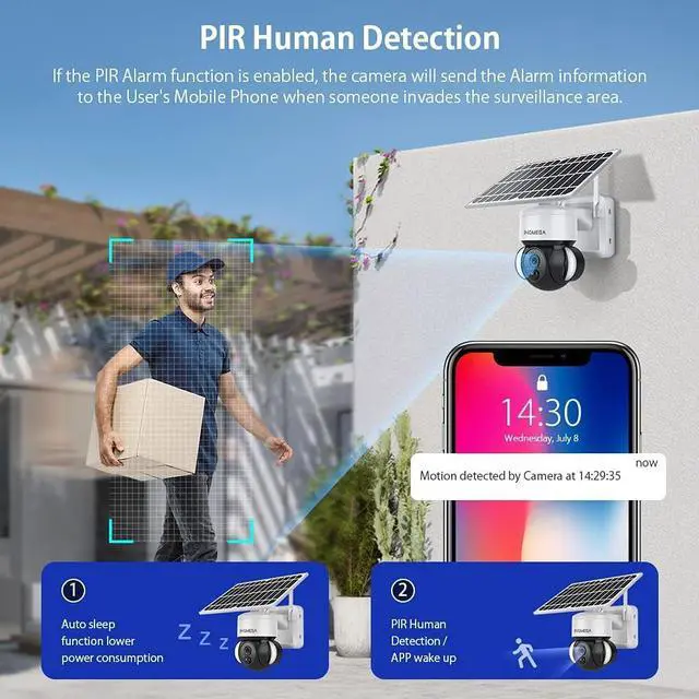 PIR Motion Detection & Real-time AlertsWireless home security camera detects human movement and instantly sends alerts to your phone. It triggers a loud siren or spotlight to deter unwanted visitors. Please note: it does not support automatic tracking of moving objects or continuous recording; the camera records only when motion is detected.