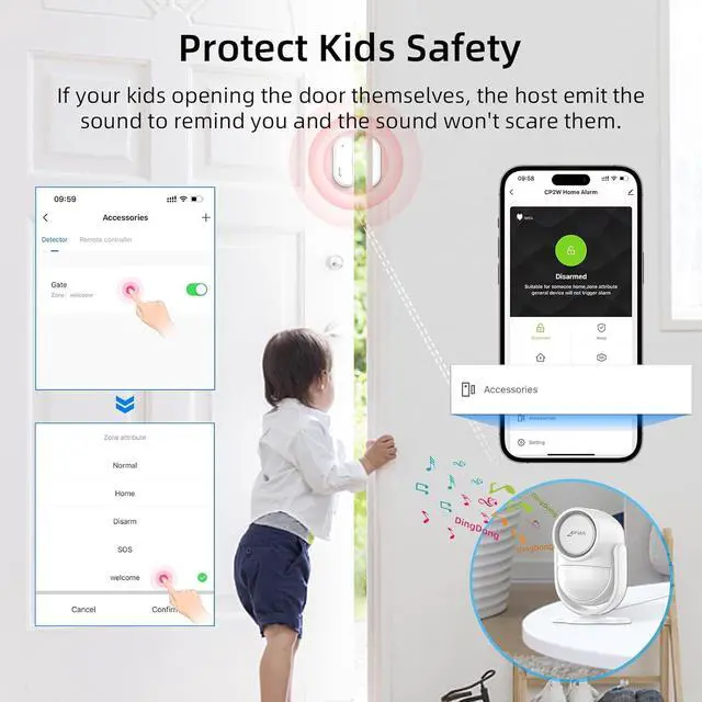 Loud Home Alarm - The CPVAN Wi-Fi Smart Home Security System doubles as a motion detector and an alarm. When the door/window sensors get removed from each other or when the hub detects motion, the alarm hub emits 120-decibel alarm and simultaneously sending push notifications to your smartphone.And you can set the door sensors in welcome status so when in disarmed mode,someone opens door,you will hear chime.